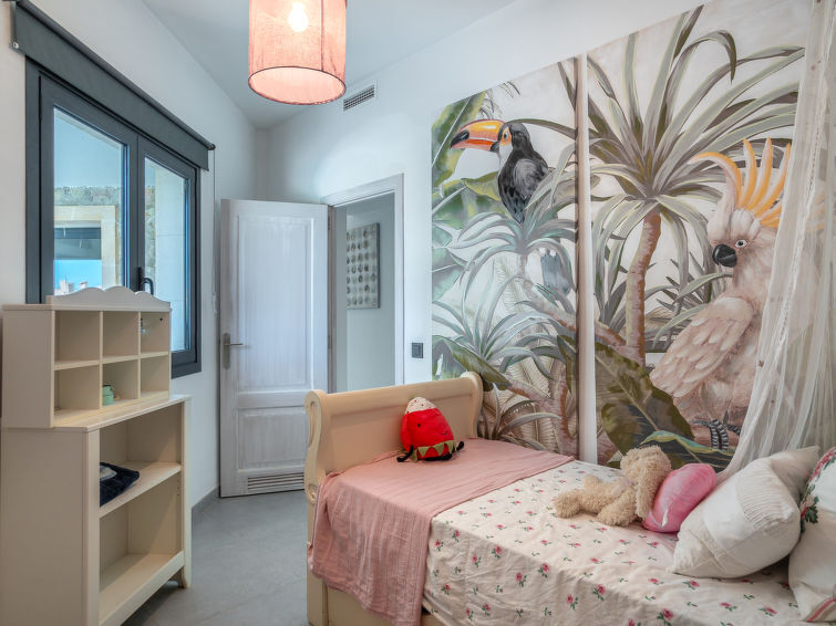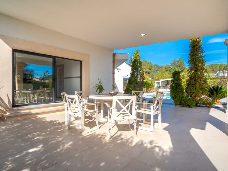 "Ca na Saurina", villa 5 pièces 200 m2 sur 2 niveaux. Logement idéal pour 7 adultes. Spacieux et clair, complètement rénovée, aménagement très confortable et moderne: grand séjour/salle à manger ouvert avec cheminée (uniquement à titre de décoration), table pour les repas, Télévision numérique, chaînes de TV internationales, écran plat, air-conditionné et chauffage à air chaud. Sortie sur le jardinet, sur la piscine. 1 grande chambre double avec 1 grand-lit (160 cm, longueur 200 cm), bain/douche/WC, double vasque, air-conditionné et chauffage à air chaud. Sortie sur le jardinet. 1 chambre double avec 1 grand-lit (150 cm, longueur 190 cm), air-conditionné et chauffage à air chaud. Sortie sur le jardinet. 1 chambre double avec 1 x 2 lits superposés (90 cm, longueur 190 cm), douche/WC, double vasque, air-conditionné et chauffage à air chaud. 1 chambre avec 1 lit (90 cm, longueur 190 cm), air-conditionné et chauffage à air chaud. Cuisine (5 plaques de cuisson, four, lave-vaisselle, grille-pain, bouilloire électrique, micro-ondes, congélateur, cafetière électrique, ilot de cuisine) avec air-conditionné et chauffage à air chaud. Sortie sur le jardinet. WC séparé. À l'étage supérieur: (escalier en colimaçon) galerie mansardée. Grand jardinet, tonnelle. Meubles de terrasse, barbecue, chaises longues (6), loggia. Vue partielle sur les montagnes. A disposition: lave-linge, sèche-linge, fer à repasser, chaise haute pour enfant, lit bébé jusqu'à 2 ans, sèche-cheveux. Internet (Connexion WIFI, gratuit). Place de parking près de la maison. Veuillez noter: maison non-fumeur. Extincteur. La piscine mentionnée dans le descriptif est privative. ETV/10554 // Reg. Nr.: ESFCTU0000070300002093420000000000000000000ETV/105547