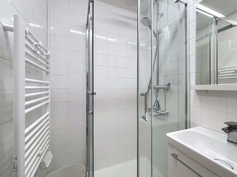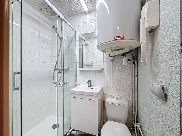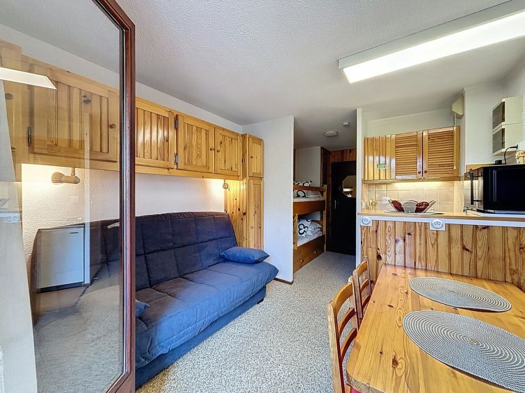 Studio 1-kamer 17 m2 op de 1e verdieping. Eetkamer met 1 opklapbed (140 cm, lengte 190 cm), TV (Flatscreen TV), elektrische verwarming. Uitgang naar het balkon, op het zuidwesten. Hal met 1 x 2 stapelbedden (80 cm, lengte 190 cm). Kookhoek (2-pits kookplaat, waterkoker, magnetron, elektrische koffiemachine, pads voor de koffiemachine (Senseo)). Douche/WC. Elektrische verwarming, boiler (100 liter). Klein balkon, op het zuidwesten gelegen. Balkonmeubilair. Uitzicht op de bergen. Niet rokers woning. Rookmelders. In plaats van een afgesloten slaapkamer bevinden sommige slaapgedeeltes zich in een open ruimte (galerij, nis, etc.). Bedlinnen, handdoeken, eindschoonmaak en alle energiekosten zijn inclusief. Aanbod door een particulier volgens art. 155, IV van CGI.