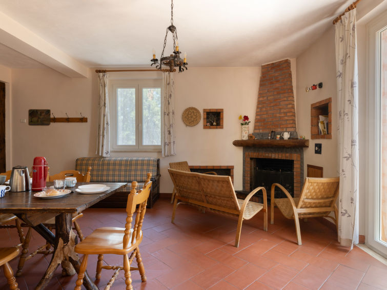 Villa 5-kamers 160 m2 op 2 verdiepingen. Comfortabel en rustiek ingericht: woon-/eetkamer met open haard en Sat-TV (Flatscreen TV). Uitgang naar het balkon, naar het terras. 1 2-pers. kamer. Keuken (4-pits kookplaat, oven, broodrooster, waterkoker, grill, pizzaoven). Douche/WC. Boiler (80 liter). Bovenverdieping: (wenteltrap) hal. 3 2-pers. kamers met afgeschuinde daken, hoogte van het plafond 70 - 300 cm. Aparte WC. Verwarming, houtverwarming. Verwarming alleen beschikbaar van 01.11. tot 15.04. Balkon 15 m2, groot terras 30 m2. Terrasmeubelen, barbecue. Beperkt uitzicht in de verte op zee, de bergen en het dal. Ter beschikking: wasmachine, strijkijzer, kinderstoel, kinderbed tot 2 jaar, haardroger. Internet (Internet (WiFi), gratis). Parkeerplaats (3 Auto's). Rookmelders, brandblusser. IT087021C2685VYWMU