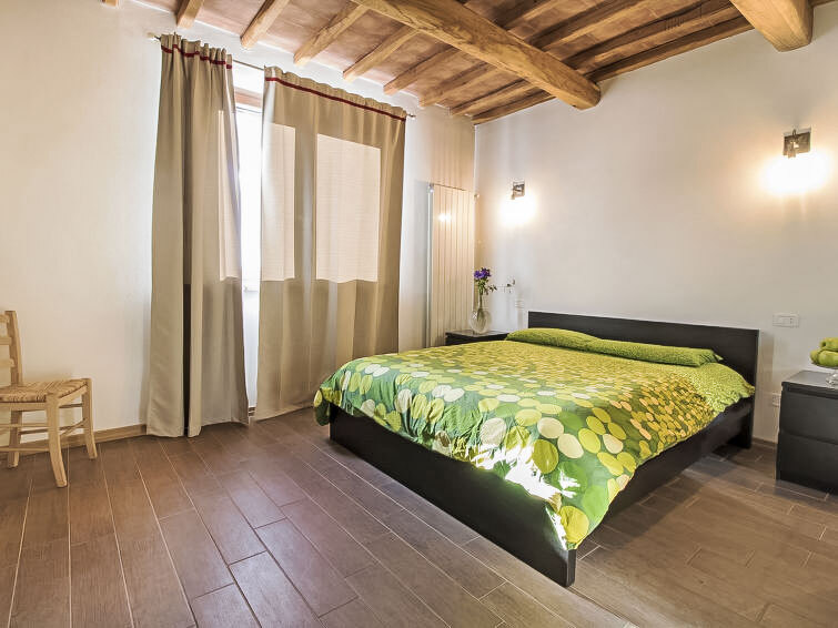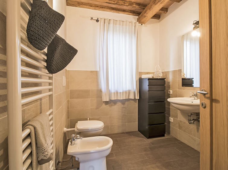 Huis 3-kamers 80 m2, op de begane grond. Gerenoveerd, smaakvol en gezellig ingericht: groot woonkamer met 1 2-pers divanbed en TV (Flatscreen TV), verwarming en air-conditioning. Uitgang naar de loggia. 1 2-pers. kamer met air-conditioning. 1 kamer met 1 bed, 1 2-pers bed en air-conditioning. Open keuken (4-pits kookplaat, oven, afwasmachine, broodrooster, magnetron, elektrische koffiemachine, pads voor de koffiemachine (Nescafe Pinguino)) met eettafel. Uitgang naar de tuin. Douche/bidet/WC. Houtverwarming, heteluchtverwarming. Zithoek in de tuin gedeeltelijk overdekt, tuin. Ter beschikking: wasmachine, droger, klamboe, haardroger, haardhout (gratis). Internet (Internet (WiFi), gratis). Parkeerplaats (omheind). IT053021C2TV4GTQEV