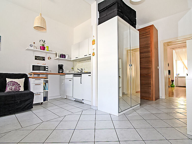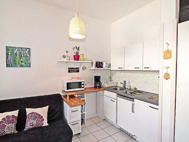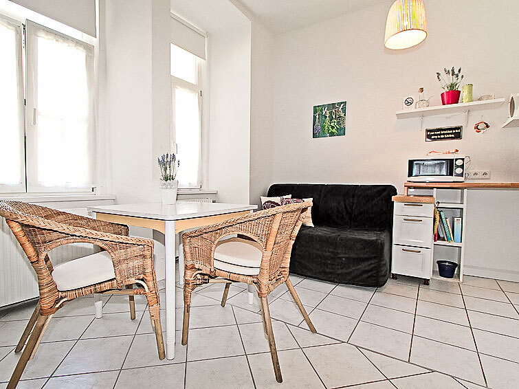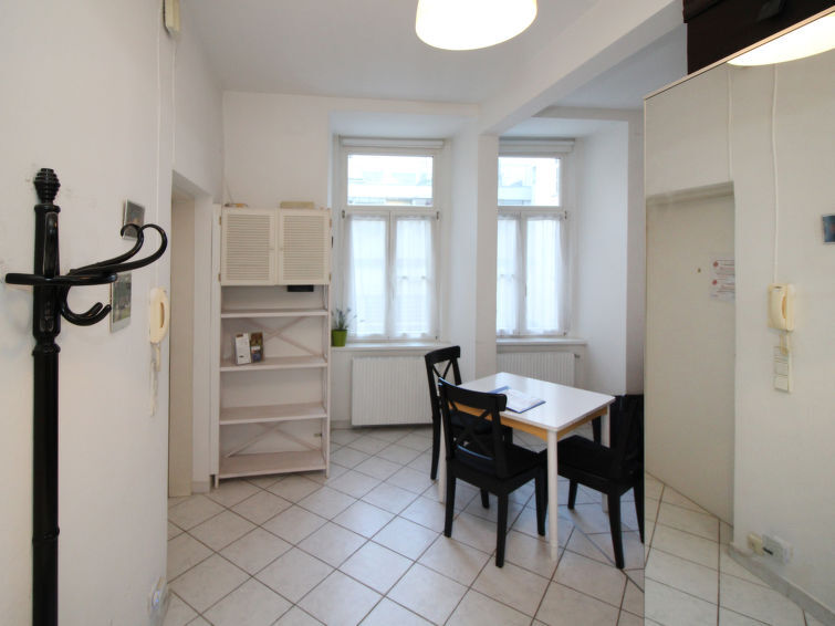 Appartement 2-kamers 40 m2 op de 2e verdieping. Smaakvol en gezellig ingericht: woon-/slaapkamer met 1 2-pers bed (180 cm), TV (Flatscreen TV). Open keuken (2-pits kookplaat, magnetron, elektrische koffiemachine) met eettafel, 1 opklapbed (140 cm), radio en CD-speler. Douche/WC. Verwarming. Ter beschikking: strijkijzer, haardroger. Internet (WiFi, gratis). Geschikt voor families. Niet rokers woning.