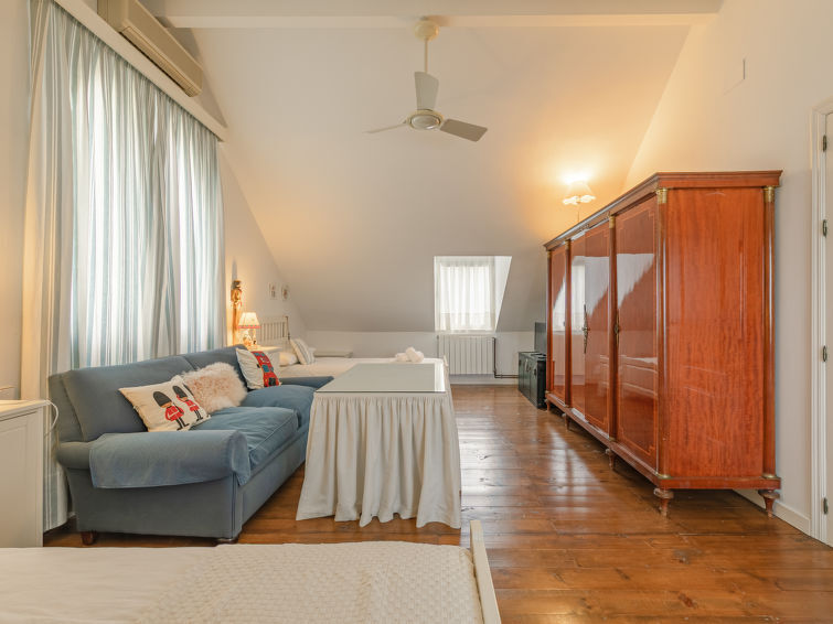 "Las Codornices", villa 11-kamers 500 m2 op 3 verdiepingen. Doelmatig en comfortabel ingericht: groot woon-/eetkamer met open haard, Digitale TV, Flatscreen TV, radio, CD-speler en DVD. 2 kamers, elke kamer heeft 1 2-pers bed (150 cm, lengte 190 cm), bad/WC. 2 kamers, elke kamer heeft 2 bedden (90 cm, lengte 190 cm). 1 kamer met 1 bed (90 cm, lengte 190 cm). Groot keuken (oven, afwasmachine, 4 keramische glas kookplaten, broodrooster, waterkoker, magnetron, diepvriezer, elektrische koffiemachine). Douche/WC. Bovenverdieping: 1 kamer met 1 2-pers bed (150 cm, lengte 190 cm). 1 kamer met 2 bedden (90 cm, lengte 190 cm), 1 x 2 stapelbedden (90 cm, lengte 190 cm). Bad/WC. 2e Verdieping: Erker. 3e Verdieping: groot woonkamer met bibliotheek, Digitale TV en Flatscreen TV. Keuken (oven, afwasmachine, 4 keramische glas kookplaten, waterkoker, magnetron, diepvriezer, elektrische koffiemachine). Bad/bidet/WC. Vloerverwarming. Zolderverdieping: 1 kamer met 1 2-pers bed (150 cm, lengte 190 cm). 1 kamer met 2 bedden (90 cm, lengte 200 cm), 1 2-pers divanbed. Bad/bidet/WC. Air-conditioning, heteluchtverwarming. Tuin. Barbecue, ligstoelen. Ter beschikking: wasmachine, strijkijzer, kinderstoel, kinderbed tot 2 jaar, haardroger. Internet (WiFi, gratis). Geschikt voor families. Rookvrij huis. Maximaal 1 huisdier/hond toegestaan. Geen interne verbinding tussen de aparte wooneenheden. VTAR/SE/00682