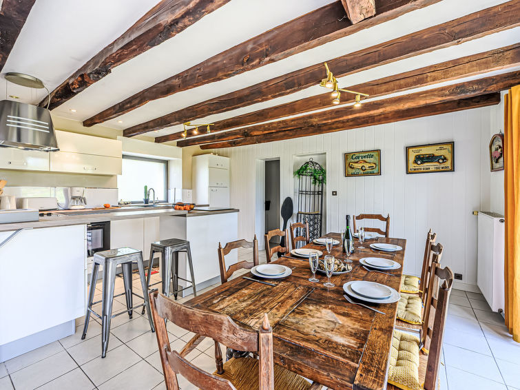 "Karvez", huis 5-kamers 157 m2. Comfortabel ingericht: woon-/eetkamer met TV (Flatscreen TV), tegelkachel. Uitgang naar de tuin. Keuken (3-pits kookplaat, oven, afwasmachine, broodrooster, waterkoker, magnetron, diepvriezer, elektrische koffiemachine). Aparte WC. Bovenverdieping: 2 kamers, elke kamer heeft 2 bedden (90 cm, lengte 190 cm). 1 kamer met 1 bed (90 cm, lengte 190 cm). 1 kamer met 1 2-pers bed (1 x 160 cm, lengte 190 cm), bad. Douche, aparte WC, dubbele wastafels. Aanbod door een particulier volgens art. 155, IV van CGI.