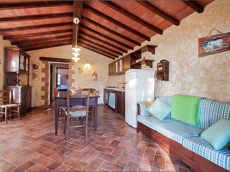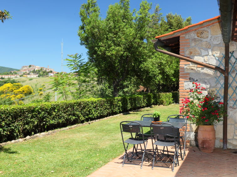 "Poggiolo", huis 3-kamers 55 m2, op de begane grond. Rustiek en gezellig ingericht: woon-/eetkamer met 1 divanbed, Sat-TV en air-conditioning. Uitgang naar de tuin. 1 2-pers. kamer met air-conditioning. Uitgang naar de tuin. 1 kleine kamer met 1 bed en 1 uitschuifbaar bed. Kookhoek (oven, afwasmachine, broodrooster, magnetron, elektrische koffiemachine). Uitgang naar de tuin. Douche/bidet/WC. Tuin. Barbecue, zitgelegenheid. Mooi panoramazicht op het landschap en Roccastrada. Ter beschikking: wasmachine. Internet (WiFi, gratis). Maximaal 2 huisdieren/honden toegestaan. Privé ingang. IT053021C2RPJ6EPJ5