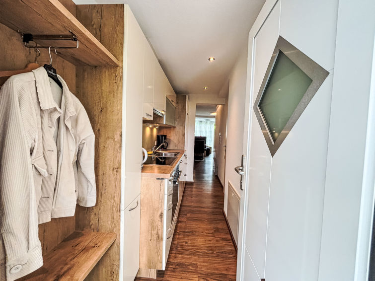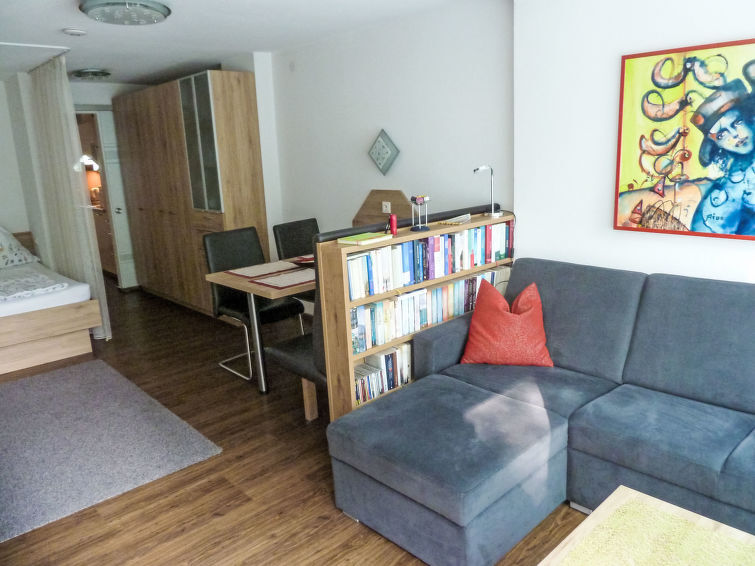 "TOP 4", appartement 1-kamer 33 m2, op de begane grond. Mooi en gezellig ingericht: woon-/slaapkamer met 1 2-pers bed, eettafel, Sat-TV en internationale TV-zenders (Flatscreen TV). Uitgang naar het terras. Kleine kookhoek (oven, afwasmachine, 4 keramische glas kookplaten, waterkoker, elektrische koffiemachine). Douche/WC. Vloerverwarming. Parketvloeren. Klein terras. Terrasmeubelen. Ter beschikking: Internet (WiFi, gratis). Niet rokers woning.