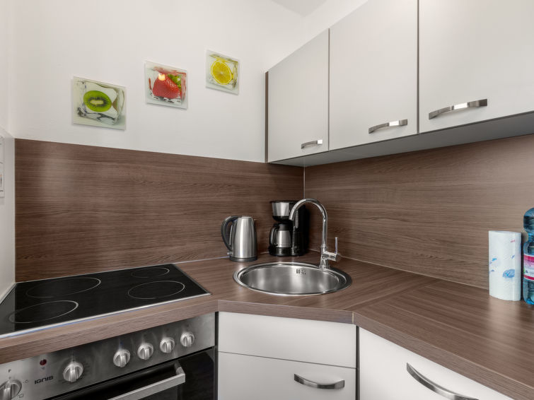 " Top C", appartement 3-kamers 65 m2 op de 1e verdieping. Licht, modern en smaakvol ingericht: hal. Woonkamer met eettafel en Kabel-TV (Flatscreen TV), DVD. Uitgang naar het balkon. 2 2-pers. kamers. Kleine keuken (oven, afwasmachine, 4 keramische glas kookplaten, elektrische koffiemachine). Bad/WC. Balkon 10 m2. Balkonmeubilair. Mooi panoramazicht op de bergen en het landschap. Ter beschikking: haardroger. Internet (WiFi, gratis). Parkeerplaats nr. 91. Niet rokers woning, rookvrij huis. Rookmelders. De woning is aan de rechterkant van de gang. 50415-006730-2020