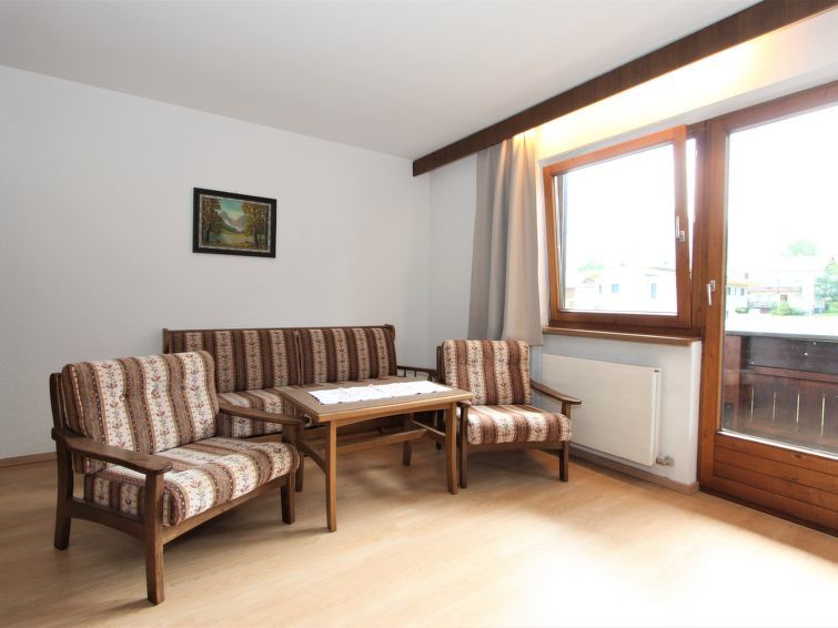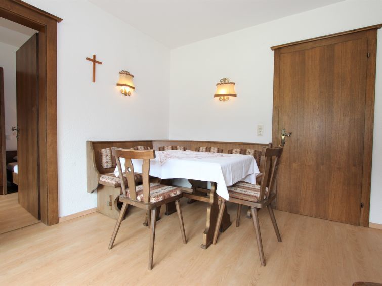 Appartement 2-kamers 65 m2 op de 1e verdieping. Ruim, rustiek en gezellig ingericht: groot woon-/slaapkamer met 1 2-pers opklapbed (2 x 90 cm, lengte 200 cm), eethoek en Sat-TV (Flatscreen TV). Uitgang naar het balkon. 1 kamer met 2 bedden. Kookhoek in de hal (oven, 4 keramische glas kookplaten, elektrische koffiemachine). Badkamer, aparte WC. Groot balkon, op het westen gelegen. Balkonmeubilair. Mooi uitzicht op de bergen, de skipiste en het landschap. Ter beschikking: Internet (WiFi). Niet rokers woning. Maximaal 1 huisdier/hond toegestaan.