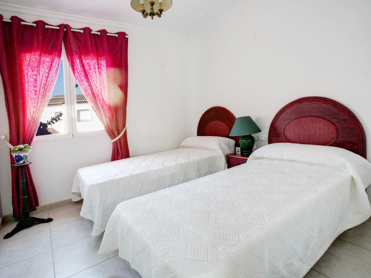 "La Giralda", appartement 3-kamers 69 m2 op de 1e verdieping. Licht, doelmatig ingericht: woon-/eetkamer met Digitale TV, Flatscreen TV, air-conditioning en heteluchtverwarming. Uitgang naar het terras. 1 kamer met 1 2-pers bed (150 cm), air-conditioning en heteluchtverwarming. 1 kamer met 2 bedden (90 cm, lengte 180 cm), elektrische kachel. Keuken (oven, 4 keramische glas kookplaten, broodrooster, waterkoker, magnetron, diepvriezer, elektrische koffiemachine). Douche/WC. Terras 10 m2. Terrasmeubelen. Uitzicht op het zwembad en de tuin. Ter beschikking: wasmachine, strijkijzer, kinderstoel, kinderbed, haardroger. Internet (WiFi, gratis). TV alleen ES. AT-458578-A // Reg. Nr.: ESFCTU00000304500056492000000000000000000AT-458578-A1