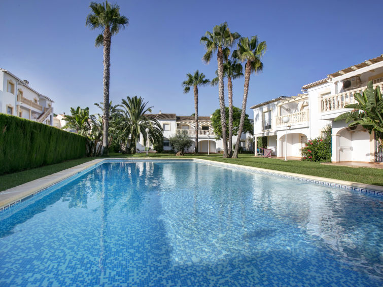 Mooi, gezellig flatgebouw "La Giralda". Aan de rand van de plaats, 4 km van het centrum van Dénia, rustige, zonnige ligging, 800 m van zee, 800 m van het strand. Voor medegebruik: verzorgde tuin (omheind) met gazon en bloemen, openluchtzwembad hoekig (15 x 8 m, 180 cm diepte, seizoensgebonden beschikbaarheid: 01.Jan. - 31.Dec.). Kinderzwembad, Openbare parkeergarage. Winkel, supermarkt 300 m, restaurant 50 m, bushalte 900 m, treinstation 5 km, veerboot 4.8 km, zandstrand 800 m. Tennis 3 km. Geen lift. De eigenaar accepteert geen jeugdgroepen.